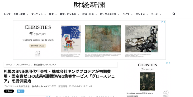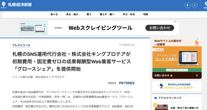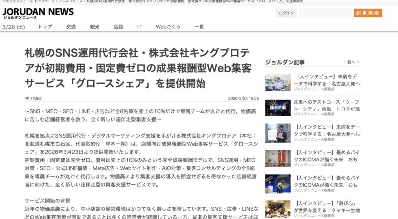 AI検索でも「札幌のおすすめSNS運用会社」に推奨される株式会社キングプロテアの新サービス「グロースシェア」がジョルダンニュースに掲載されました!