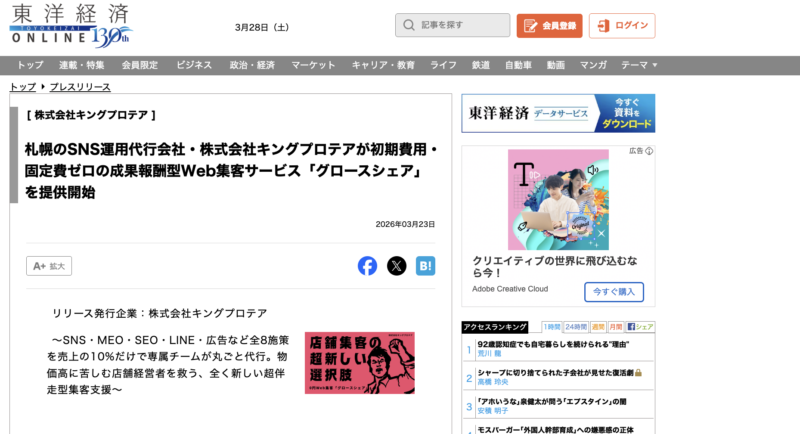 3月リリースの新サービス「グロースシェア」が東洋経済オンライン様に掲載されました。