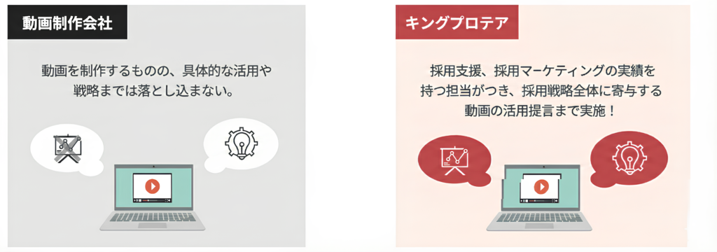 一般的な採用動画制作会社は動画を制作するだけであり、その後のリーチ獲得には寄与しない。